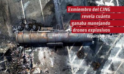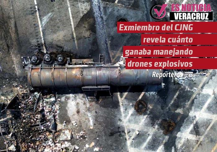 En medio del crecimiento del uso de drones con explosivos por parte del crimen organizado en México, un presunto exintegrante del Cártel Jalisco Nueva Generación (c) dio a...