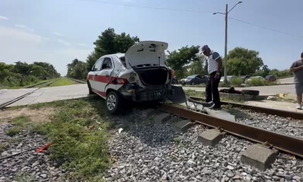 Por Mónica Ricárdez / CDP NOTICIAS Un taxi fue arrastrado por el tren de pasajeros del Ferrocarril del Istmo de Tehuantepec (FIT) cuando intentó ganarle el...