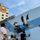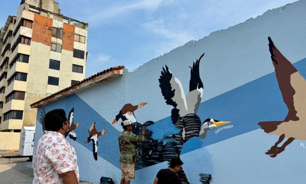 Irma Santander / CDP NOTICIAS Integrantes del movimiento cultural “Invasión Jarocha”, restauraron el mural con paisaje de la fauna, que fue dañado por un individuo el...