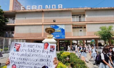 Poza Rica, Ver.- Cese inmediato y responsabilidad penal contra el presunto docente pederasta Guillermo Mendoza, exigen alumnos de la ESBO número 8 quienes se manifestaron ayer...