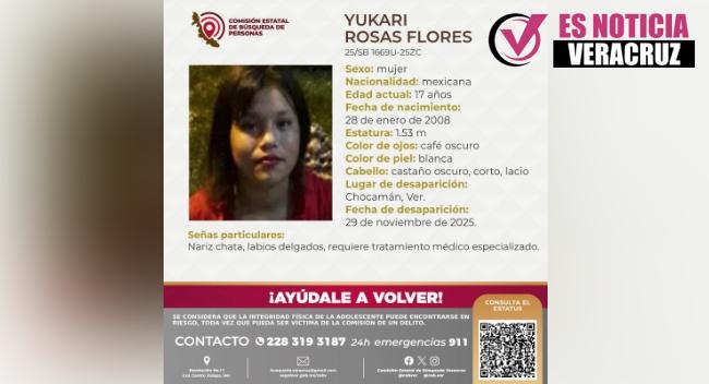 La adolescente responde al nombre de Yukari Rosas Flores, de 17 años de edad, quién vive en la colonia La Cantera, del municipio de Chocamán.