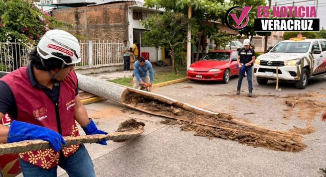 Ante esta situación, personal de Protección Civil y áreas operativas del Ayuntamiento de Poza Rica realizan recorridos y labores de atención para retirar los árboles caídos y mantener las vialidades seguras para la ciudadanía.