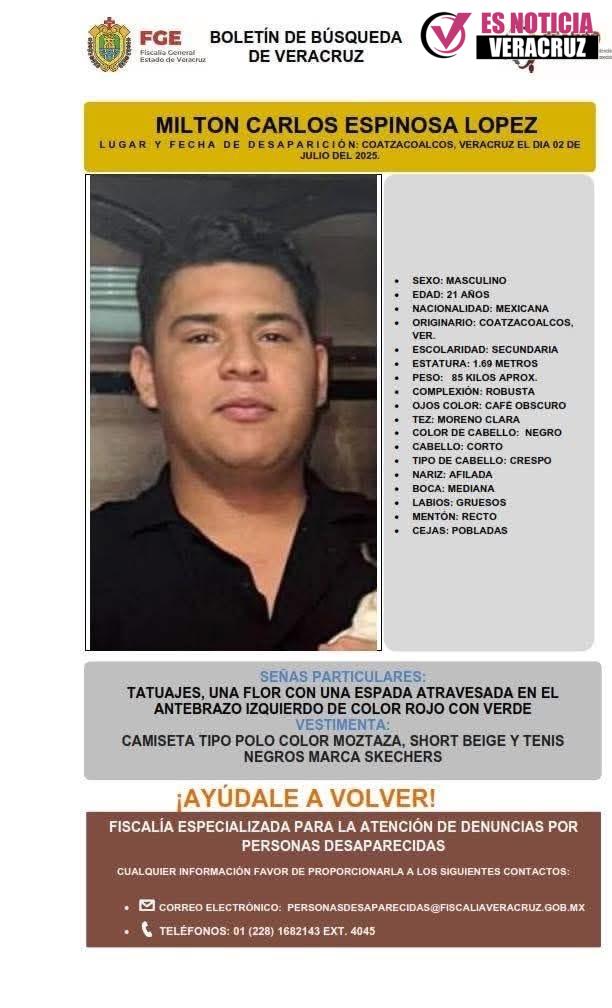 En el ejido Estero del Pantano, perteneciente a Cosoleacaque, fue encontrado sin vida el cuerpo del joven Milton Carlos Espinosa López de 21 años de edad.