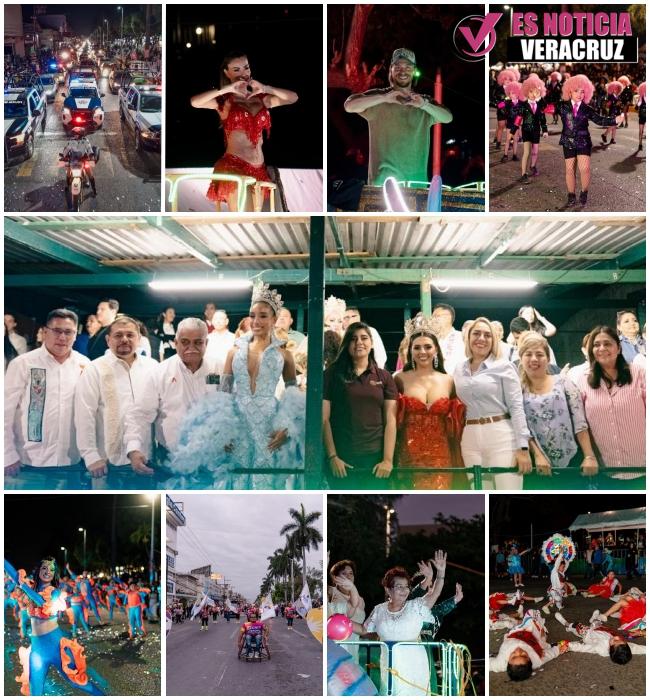Asimismo, destacó la presencia de invitados especiales como Ninel Conde, Aldo De Nigris y Fernanda Pumar, reina del Carnaval de Veracruz, quienes se sumaron al recorrido, aportando alegría y realce al desfile.