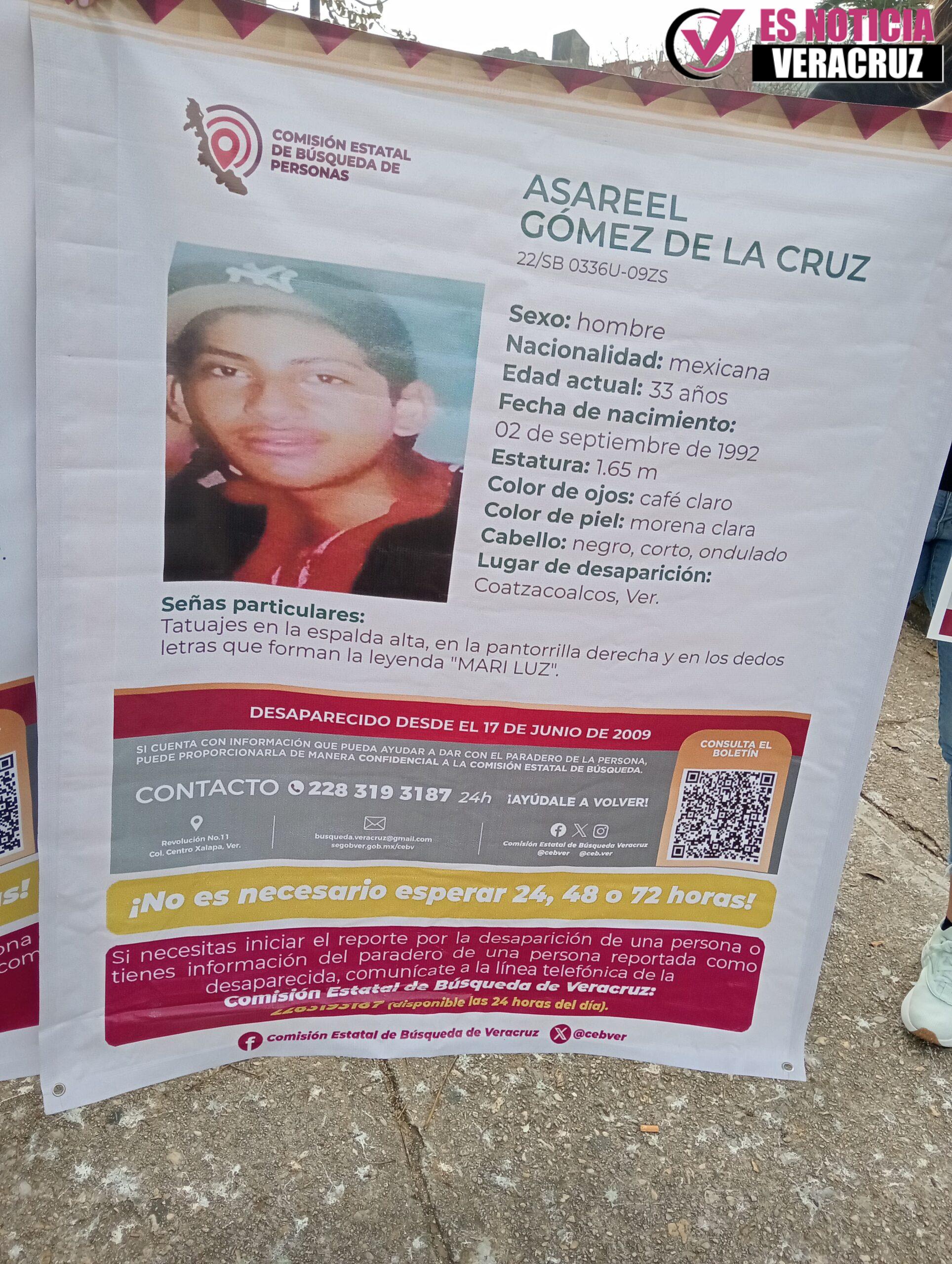 Con la firme promesa de no detenerse hasta conocer el paradero de su hijo, la señora Mary Luz de la Cruz Alonso mantiene viva la búsqueda de Asareel Gómez de la Cruz, quien fue víctima de desaparición forzada hace casi 17 años en Coatzacoalcos.