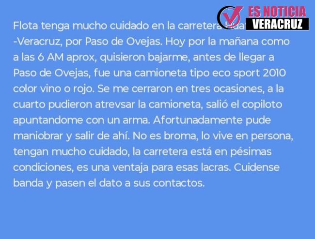 A través de las redes sociales se difundió que un joven que conducía una motocicleta, efectivamente fue despojado de su unidad en el tramo El Encinal-Angostillo. Los malvivientes lo dejaron maniatado en un cañal. Tras lograr libertarse, pidió auxilio a otro conductor, que lo llevó hasta la ciudad de Huatusco.