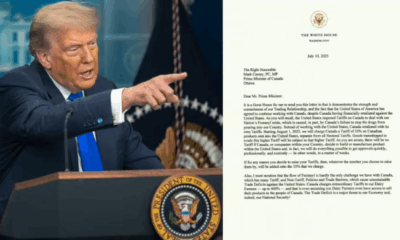 ESTADOS UNIDOS.- Canadá enfrentará un arancel de 35 por ciento a sus exportaciones a Estados Unidos a partir del 1 de agosto, anunció el presidente estadunidense,...