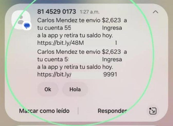 Si recibes un mensaje de texto indicando que alguien te depositó dinero, no lo abras, podrías ser víctima de un fraude. Desde finales de noviembre, usuarios de redes sociales han dado a conocer que se han encontrado con varios SMS en su bandeja de entrada con un link para entrar a otra página. Los nombres más recurrentes del emisor de estos son los siguientes: